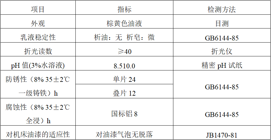 具有良好的穩(wěn)定性、極壓潤滑性、冷卻性、清洗性及防銹性。